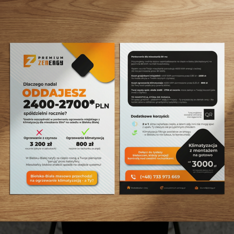- Wydrukowano 1000 sztuk na papierze 170 gram, co podkreślało estetykę i profesjonalizm materiałów promocyjnych.