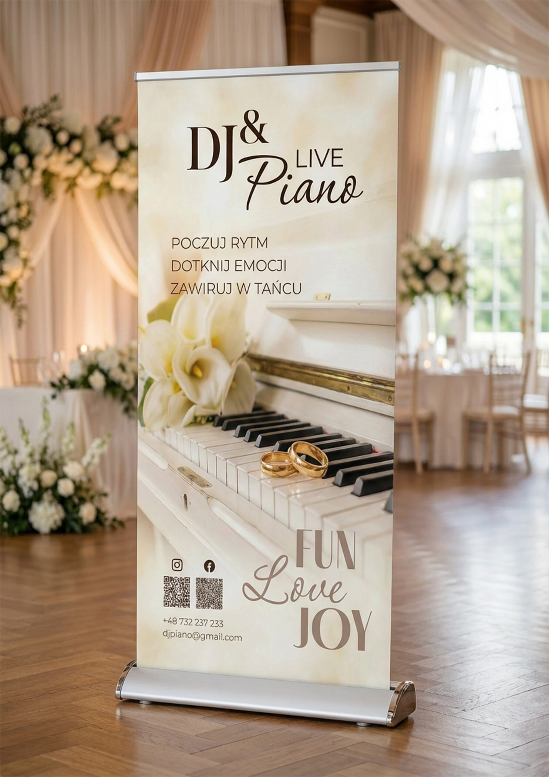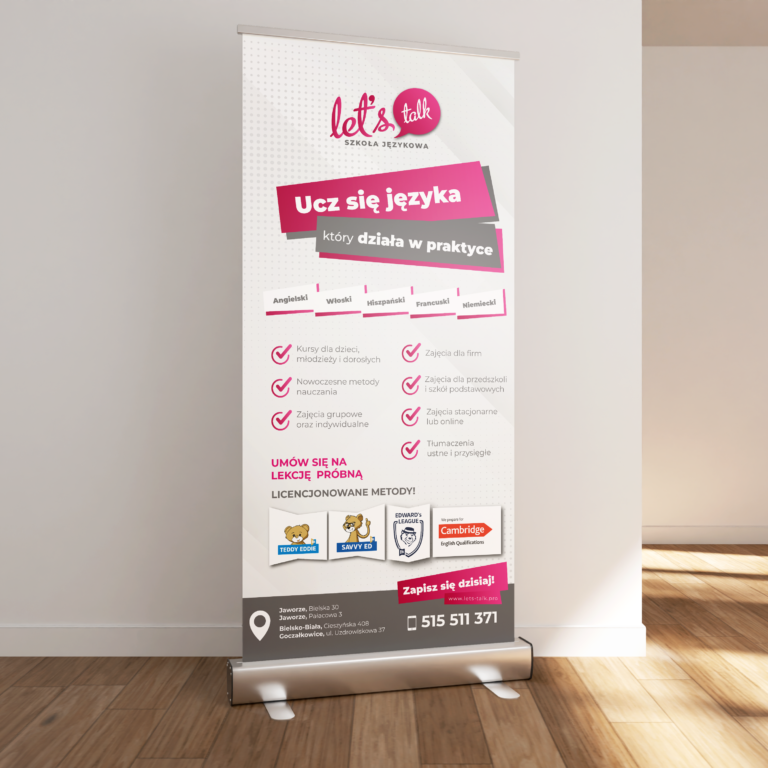 - Roll-up został zaprojektowany jako elegancka reklama, która odzwierciedlała industrialny styl wnętrza. Czarno-biała kolorystyka i nowoczesny design przyciągały uwagę i promowały restaurację w sposób subtelny i efektywny.